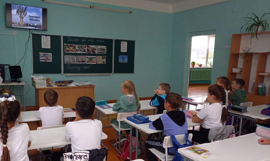 В День памяти жертв терроризма, в 3б классе был проведен классный час, посвященный 18-й годовщине трагических событий в г. Беслане на тему «Трагедия Беслана».